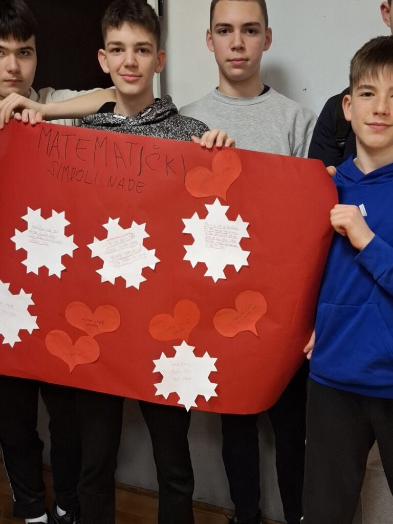 Učenici izrađuju geometrijske oblike (srca, zvijezde, spirale) koristeći matematičke pojmove i formule. Svaki oblik sadrži kratku poruku nade, ljubaznosti ili podrške. Radove izlažemo na zajedničkom pano-u ili online, kako bi pokazali da matematika može prenositi toplinu i optimizam.