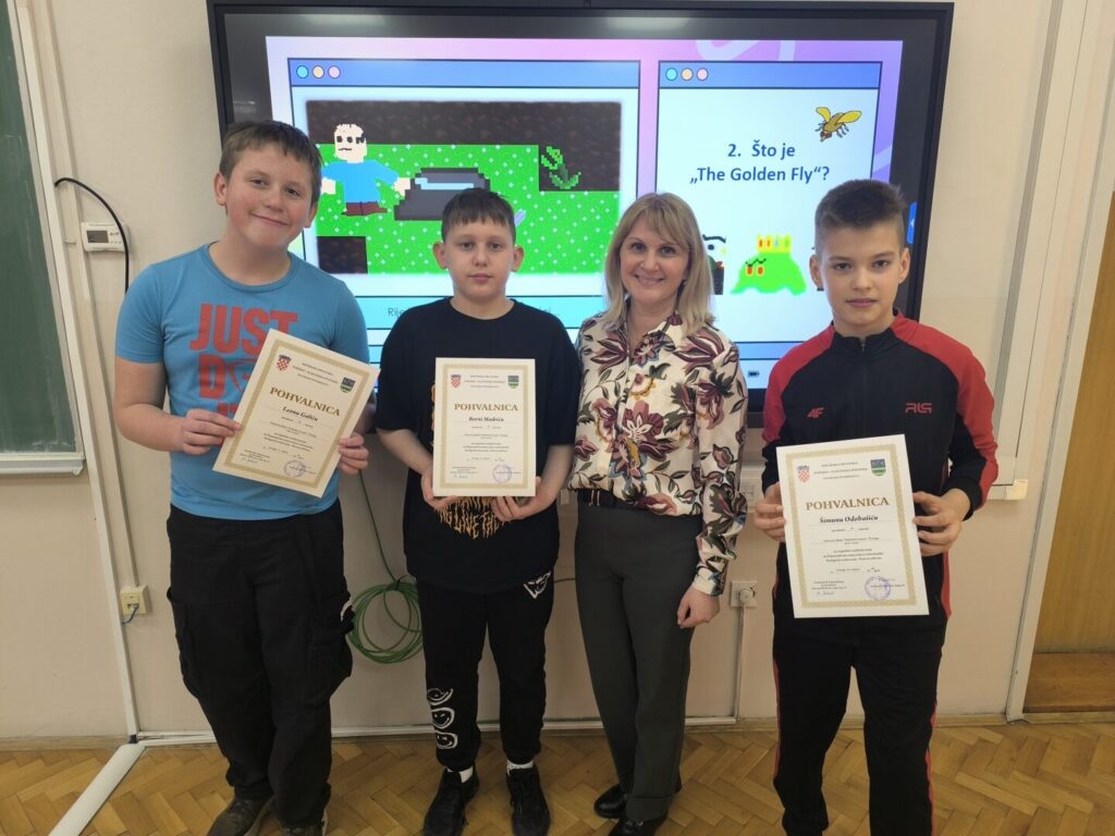 Pokazujući znanje u programiranju, timski duh i upornost učenici 6. razreda Leon Galić, Šimun Odobašić i Borna Modrić izradili su računalnu igricu „The Golden Fly“ koju su prezentirali u kategoriji Razvoj softvera, te osvojili su 1. mjesto. Rad učenika predlaže se dalje na državnu razinu.
