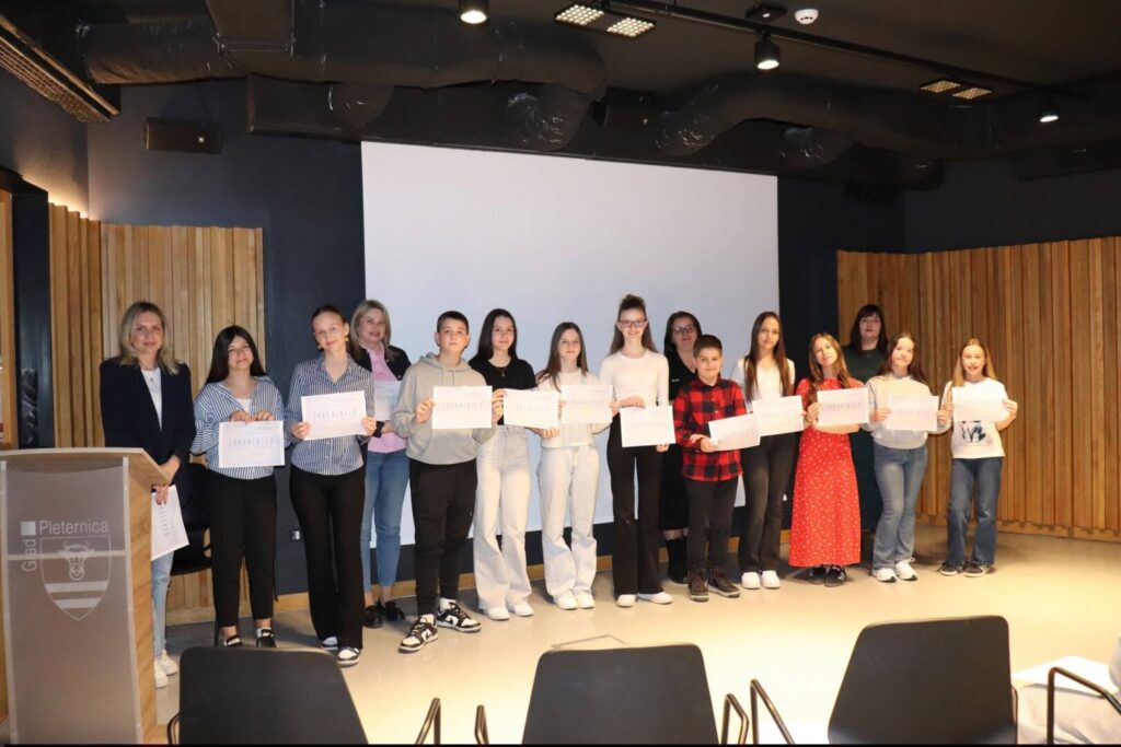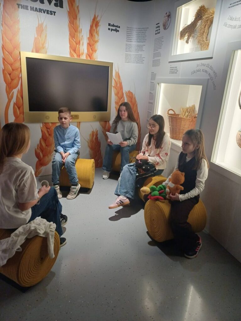Učenici naše škole Amaja Glavaš, Manuel Pavleković, Greta Loar Romić iz 4.c u mlađoj kategoriji te Matea Cvitić i Luciana Prpić u starijoj kategoriji sa školskom knjižničarkom Mirnom Kovačević sudjelovali u Pleternici na 8. Državnoj smotri u usmenom pripovijedanju koja se održala u Muzeju becarca Pleternica.