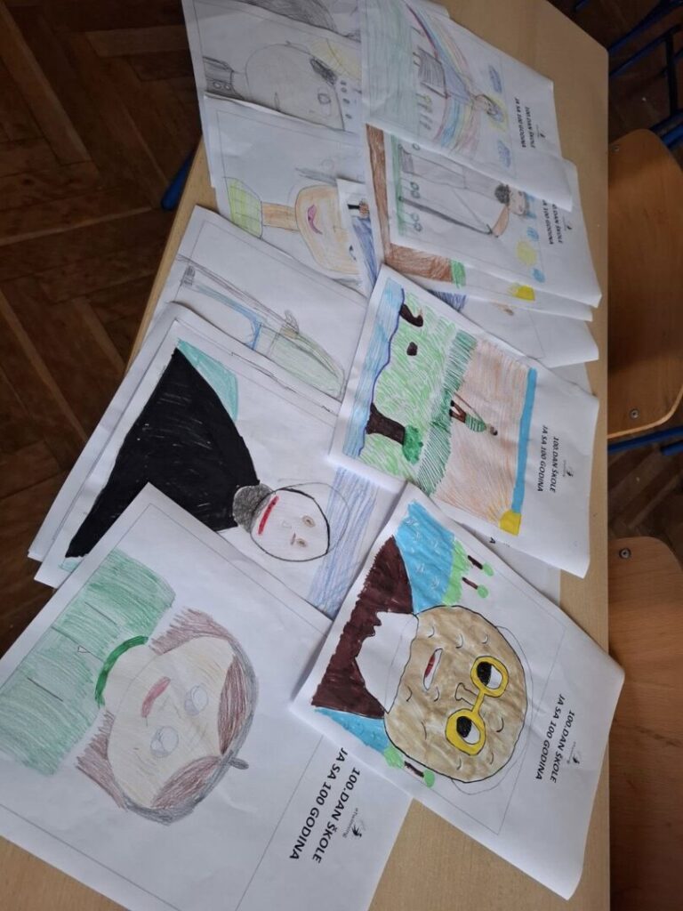 Dan smo započeli prisjećanjem na sve lijepe trenutke koje smo doživjeli u školi tijekom prvih sto dana 2. razreda. Zatim smo prihvatili izazov i u 100 sekundi pokušali napisati što više puta svoje ime. Nadalje, uz pomoć reklamnih letaka istraživali smo što sve možemo kupiti za 100 eura te pritom vježbali računanje. Posebno zabavan dio bio je crtanje sebe sa 100 godina. Pred kraj smo pokazali i svoju sportsku izdržljivost te uspješno odradili čak 100 vježbi. A na samom kraju počastili smo se sa 100 kockica čokolade.
