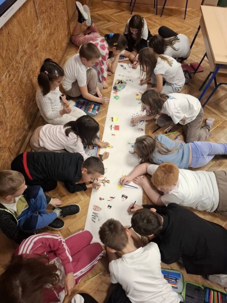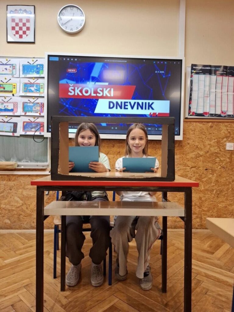 Učenici produženog boravka 2.a razreda obilježili su Svjetski dan televizije kroz niz aktivnosti. Glumili su televizijske voditelje u našem kartonskom „TV studiju“ i razredu predstavili zabavne školske vijesti. Nakon toga igrali smo kviz s poznatim TV junacima te ih crtali na velikom zajedničkom papiru. Na kraju su učenici crtali i svoj omiljeni televizijski sadržaj, a dan smo završili zajedničkim gledanjem crtića uz kokice.