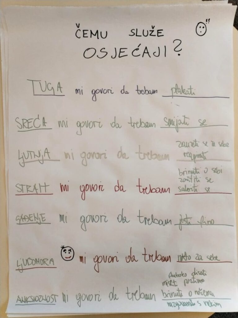 Poseban naglasak stavljen je na prepoznavanje važnih osoba u životu učenika i njihovo povezivanje u osobnu mrežu podrške, na što su učenici izrazito pozitivno reagirali, što je potvrđeno i u završnoj evaluaciji radionice.