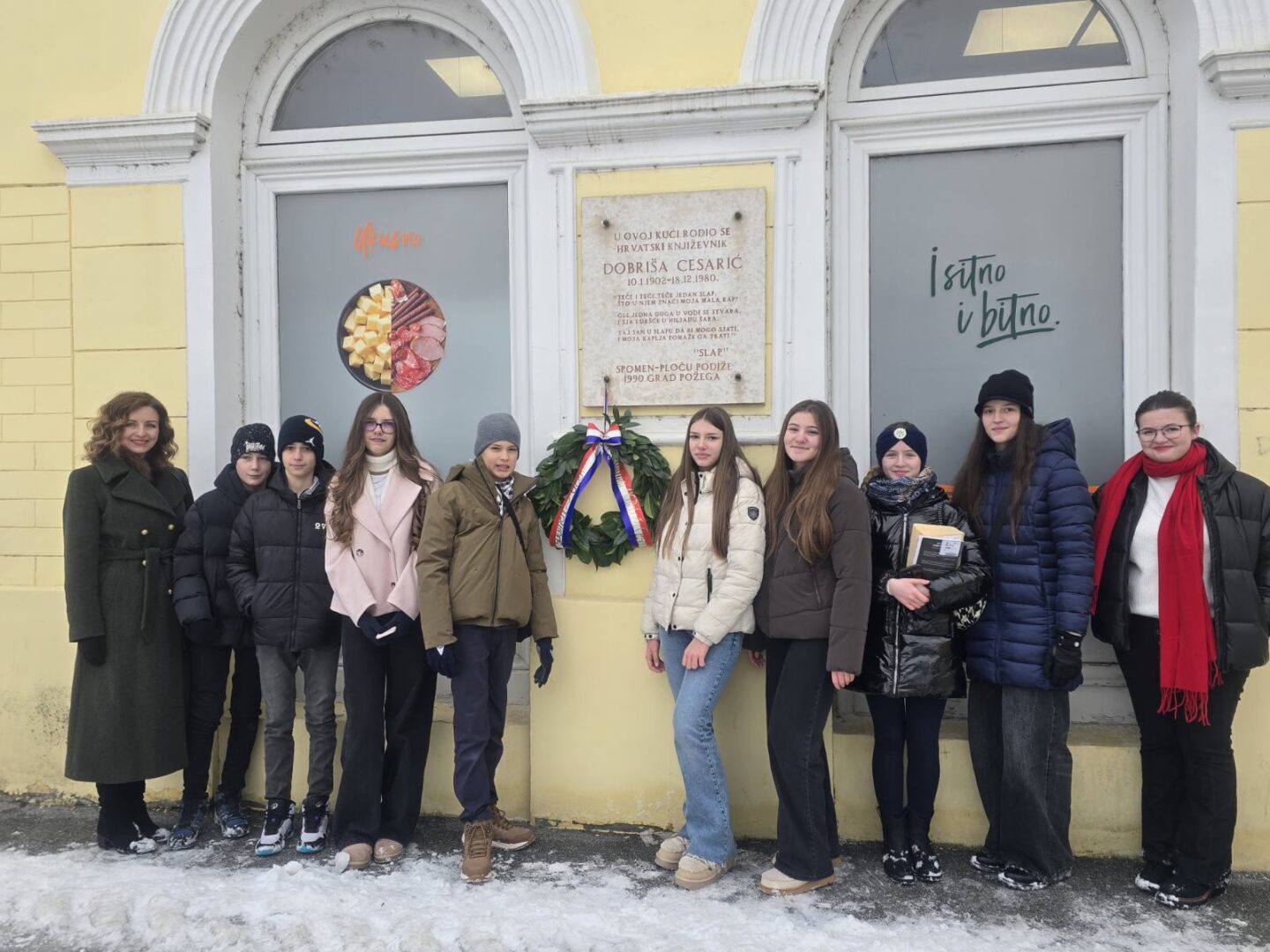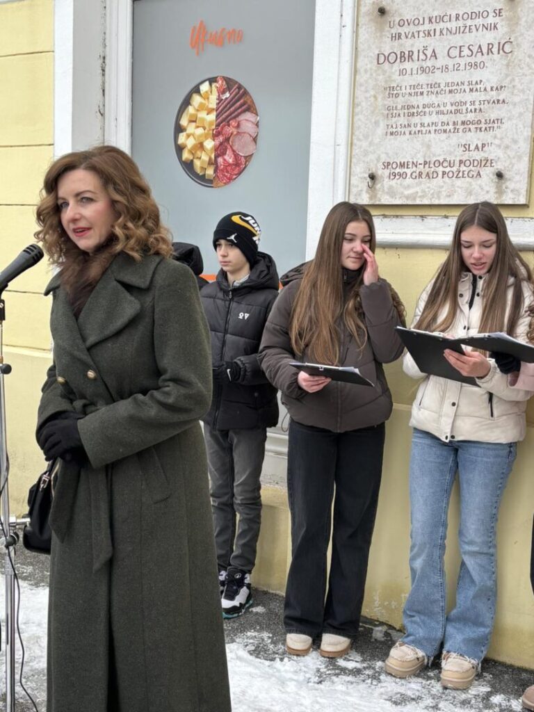 Učenici i djelatnici Osnovne škole „Dobriša Cesarić“ već tradicionalno obilježili su godišnjicu pjesnikova rođenja polaganjem vijenca na spomen-ploču njegove rodne kuće.