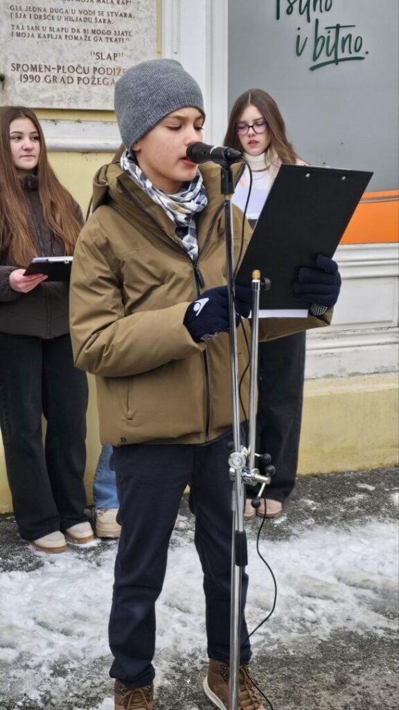 „Projekt, ove godine na temu djetinjstvo, realiziramo malo drugačije – radioničkog je tipa. Dana 30. siječnja Škola otvara svoja vrata za sve zainteresirane učenike, roditelje i sugrađane. Svaka izvannastavna skupina predstavit će se na zadanu temu kreativnim, istraživačkim i umjetničkim radom. Kroz projekt ostvarujemo suradnju i s ostalim obrazovnim ustanovama u Požegi i šire. Posebno smo ponosni na izvrsnu suradnju s OŠ Dobriša Cesarić iz Zagreba. Također, ugostit ćemo nove književnike: Bojanu Meandžija koja će predstaviti svoju knjigu „Trči! Ne čekaj me…“, te Maricu Milčelc i Krešimira Čanića. Za roditelje organiziramo predavanje na temu „Djetinjstvo – nekada i sada“, kroz suradnju s Obiteljskim centrom Požega.“ – istaknula je Blanka Đimoti Zima.