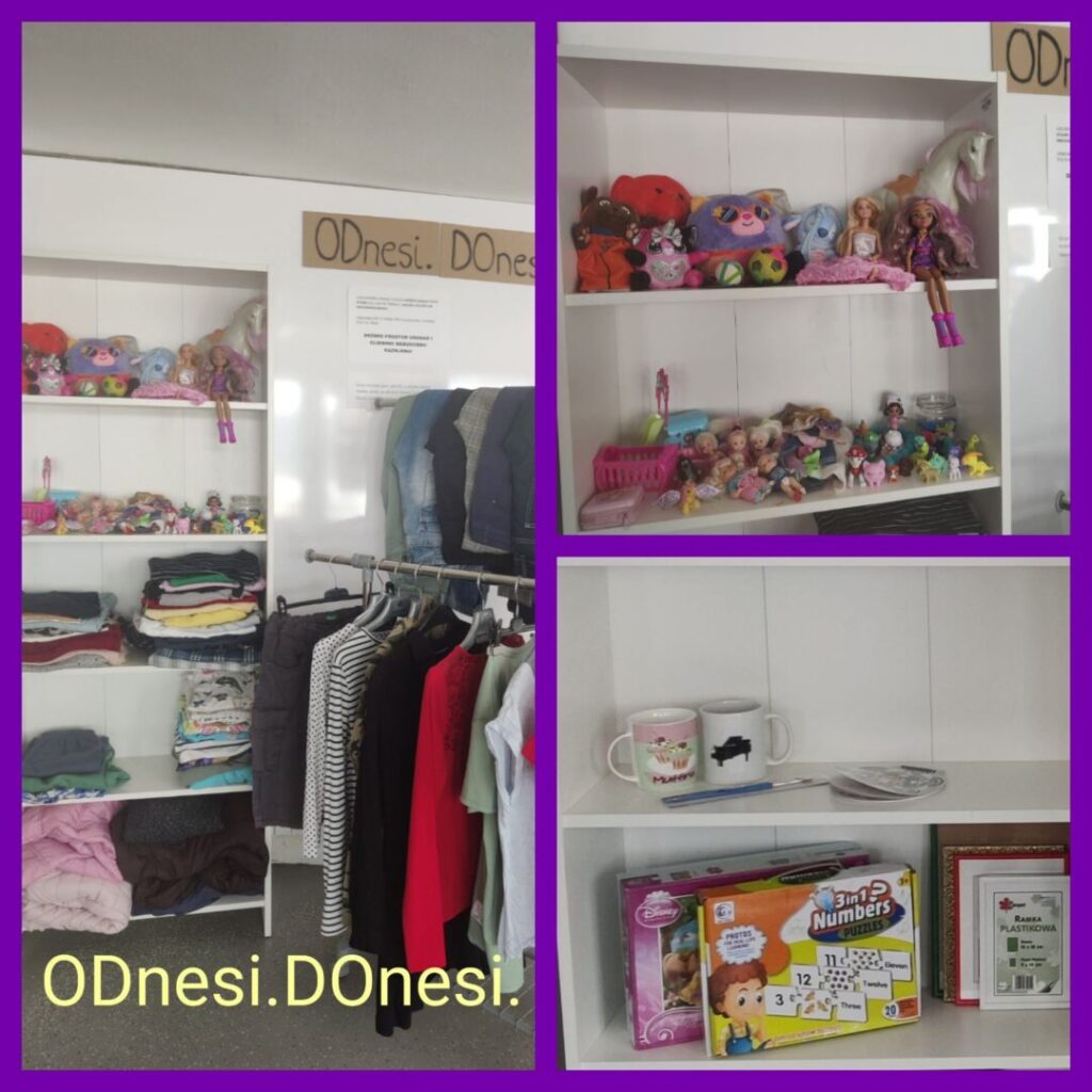 Projekt „ODnesi. DOnesi.“ živi upravo kroz razmjenu: kada netko uzme nešto što mu treba, lijepo je da zauzvrat donese nešto što njemu više ne treba, kako bi to mogao iskoristiti netko drugi. Time zajedno stvaramo krug darivanja i dijeljenja. Pozivamo i roditelje i djecu da sve što im je višak donesu u školu i stave na policu – možda baš to nekome bude od velike koristi.
