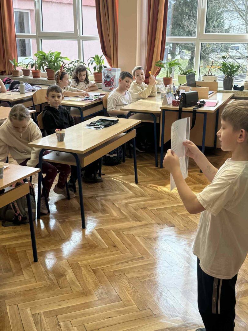 Održana je radionica “Poruka u boci” na koju su došli gosti, članica Udruge Matko Peić i 4 učenika s Kempfove škole. Peti razredi pisali su odgovor na pismo roditelja o svom djetinjstvu i usporedili fotografije iz iste životne dobi. Ostali su pisali pjesmu ili prozni...