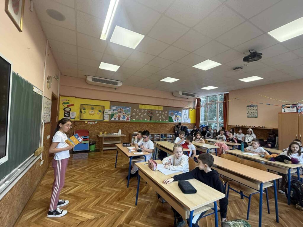 Učenici 1.c i 4.c su recitirali i pročitali pjesme našeg Dobriše. Potom su učenici poslušali pjevanu Baladu iz predgrađa. Učenici 4. razreda otplesali su valcer uz pjesmu te su kao pravi mentori pokazali i naučili korake prvašiće.