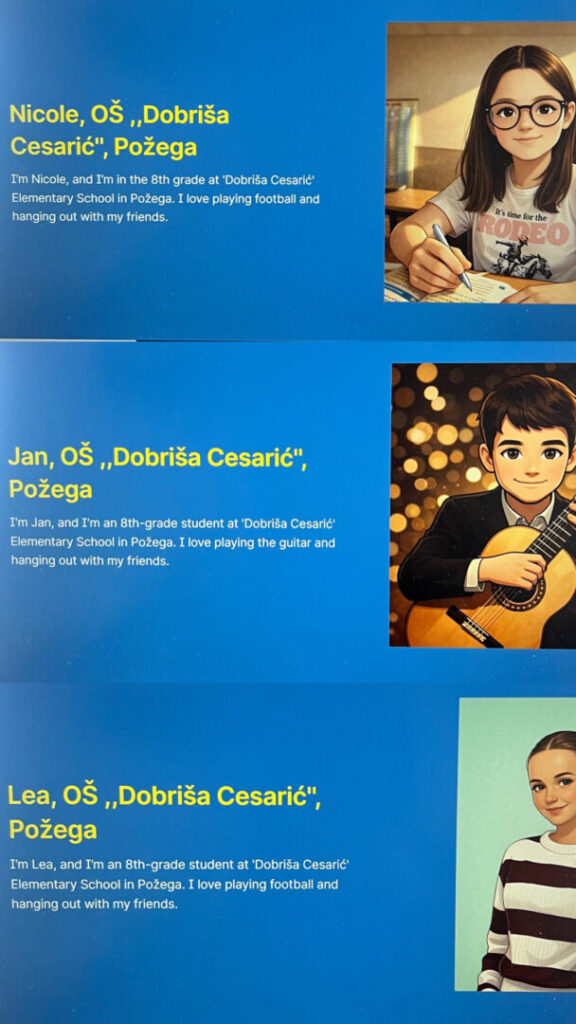 Našu školu predstavljaju učenici 8-ih razreda: Jan Vinković, Paula Balog, Lea Galić, David Vešligaj, Nicole Ivankov, Patrik Pranjić i Lukas Rukavina zajedno sa učiteljicom Marijom Glibo-Čuljak.