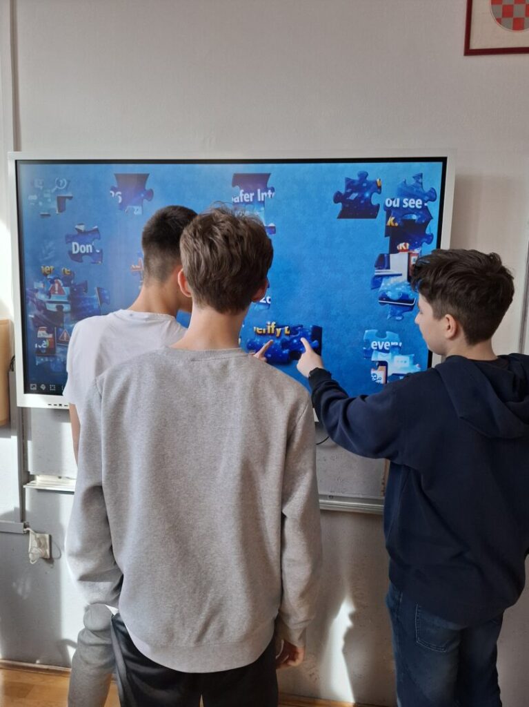 U sklopu aktivnosti rješavali smo kviz o digitalnom otisku te razgovarali o tome što naši podaci i aktivnosti na internetu govore o nama. Posebno zanimljiv dio bile su puzle na temu sigurnog interneta, koje smo slagali i pritom ponavljali važna pravila o zaštiti osobnih podataka, sigurnim lozinkama i primjerenoj online komunikaciji.