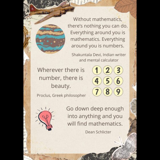 U sklopu projekta proveli smo aktivnost izrade inspirativnih plakata s citatima poznatih osoba o brojevima i matematici. Cilj aktivnosti bio je potaknuti motivaciju učenika za rad na projektu te im pokazati kako matematika može biti zanimljiva, inspirativna i povezana sa stvarnim životom. Učenici su odabrali poznate citate o matematici i brojevima te ih kreativno oblikovali u vizualno privlačne plakate. U radu su koristili digitalne alate i dobno prilagođene AI alate (Canva) koji su im pomogli u dizajnu i vizualnom oblikovanju.