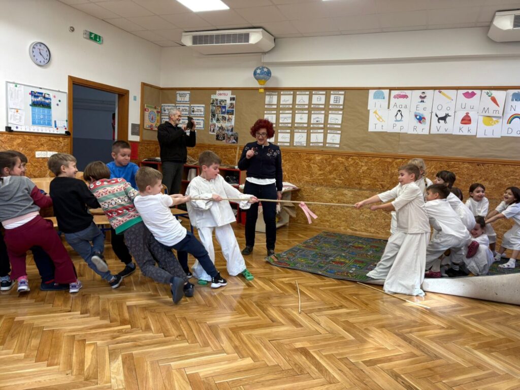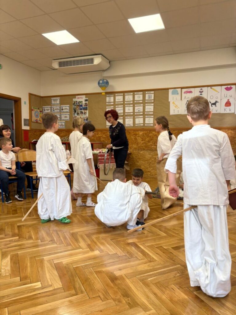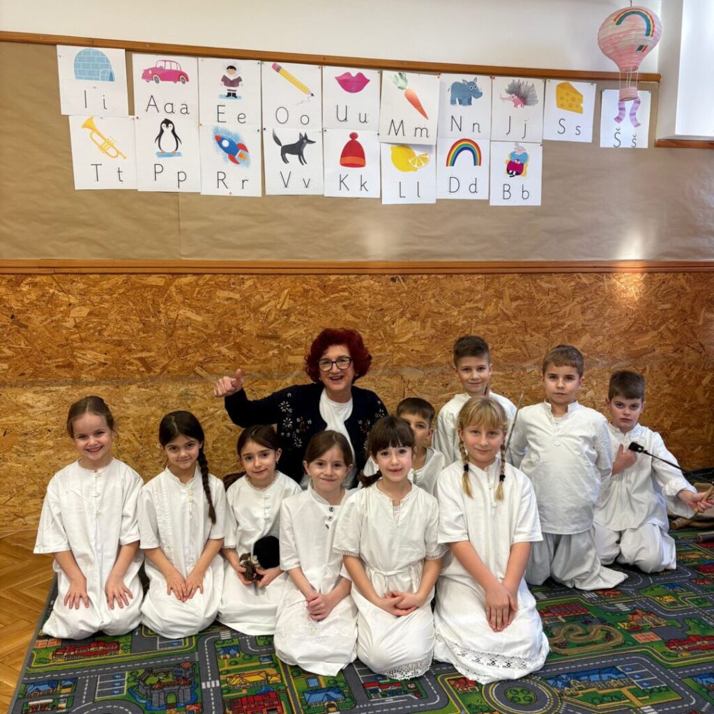 U sklopu školskog projekta “Cesarić u Cesariću” na temu Djetinjstvo, učenici 1.b pripremili su radionicu STARE IGRE, PJESME I PLESOVI za učenike i goste – bake i djedove.