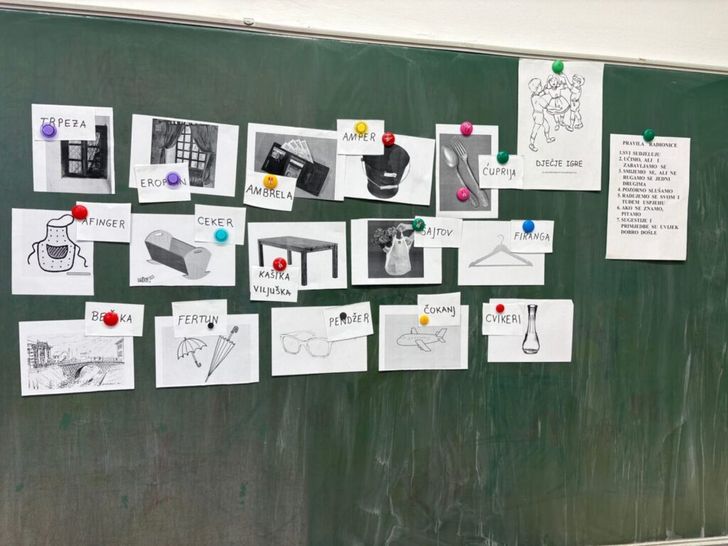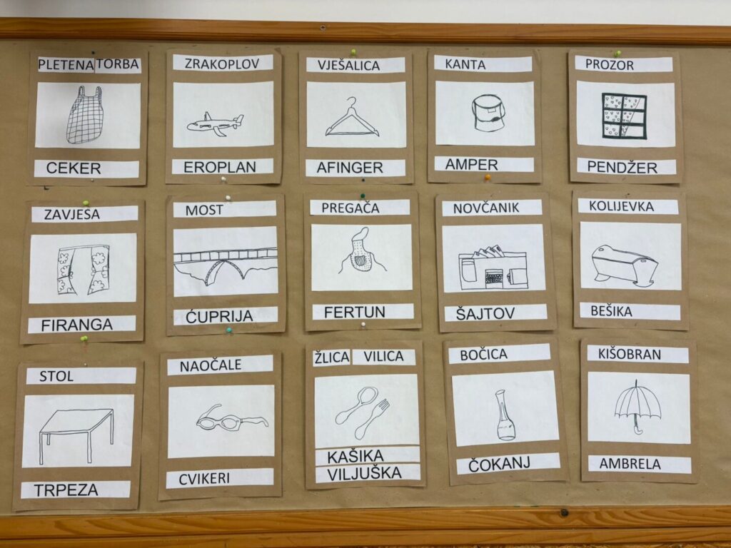 3. DJEDOVI SU ODIGRALI KVIZ: trebalo je spojiti odgovarajuću sliku s napisanim pojmovima – npr. šajtov=novčanik, firange=zavjese, trpeza=stol… Pobjednik je dobio bombon,