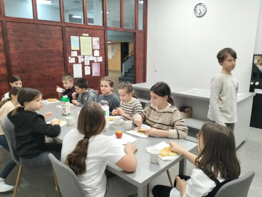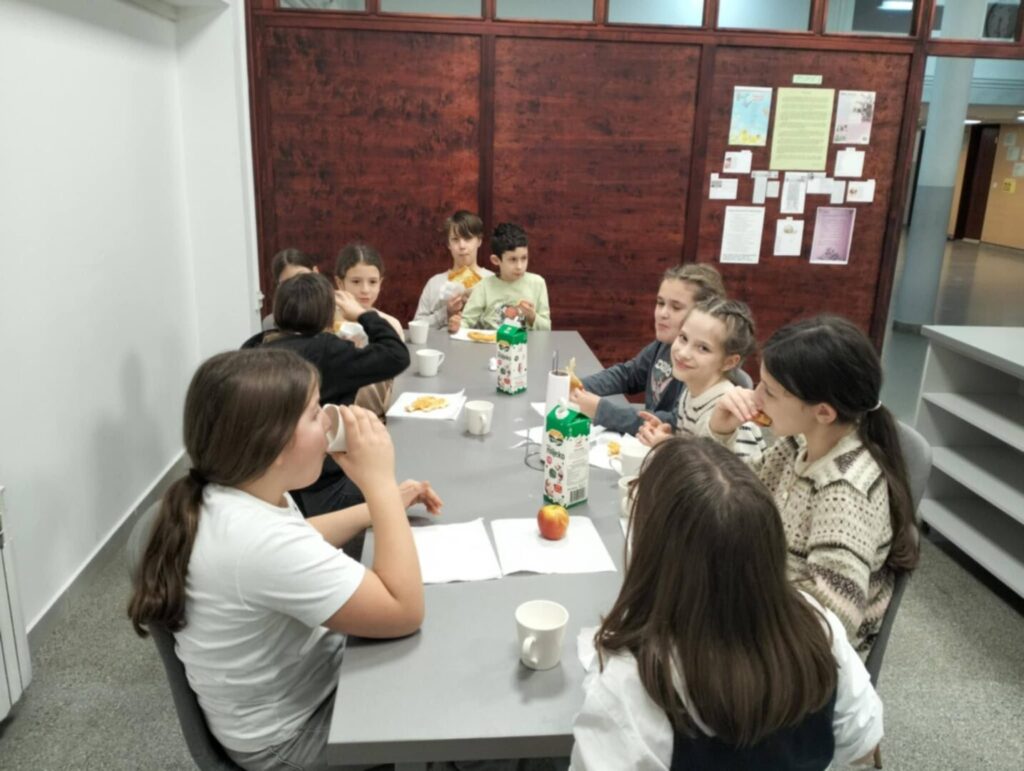 U sklopu projekta “Cesarić u Cesariću” s temom Djetinjstvo učenici izvannastavne skupine sa svojom učiteljicom Tanjom zeba, pekli su slasne lepinje.