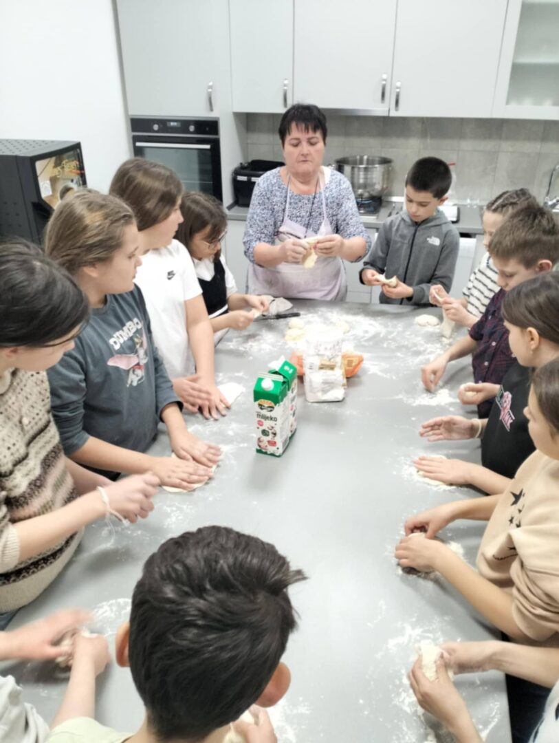 U sklopu projekta “Cesarić u Cesariću” s temom Djetinjstvo učenici izvannastavne skupine sa svojom učiteljicom Tanjom zeba, pekli su slasne lepinje.